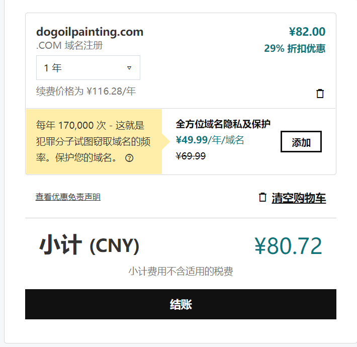 要注意注册信息邮箱一定要写真实的,因为域名购买成功后需要邮箱验证。